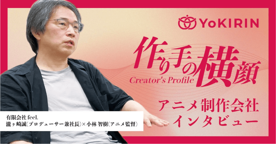 YoKIRINは、アニメ制作者の健康をサポートしながら、より広く深く、作品やその制作者等について知ることができるサービスです。あなたがサポートに参加すると、YoKIRINに登録頂いている制作会社全体へ健康サポートが届きます。サポートに対するリターンとして、制作会社から提供頂くコンテンツをYoKIRIN上で閲覧できます。